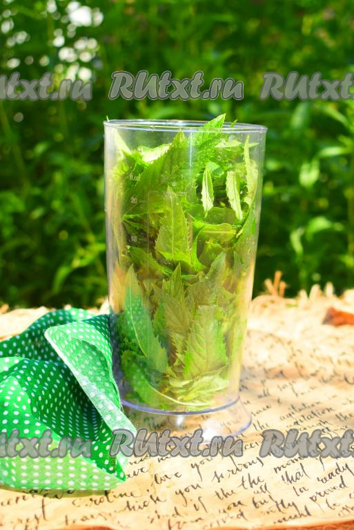 С обсушенных веточек обрываем листочки (грубые веточки нам не понадобятся) и складываем в стакан погружного блендера.