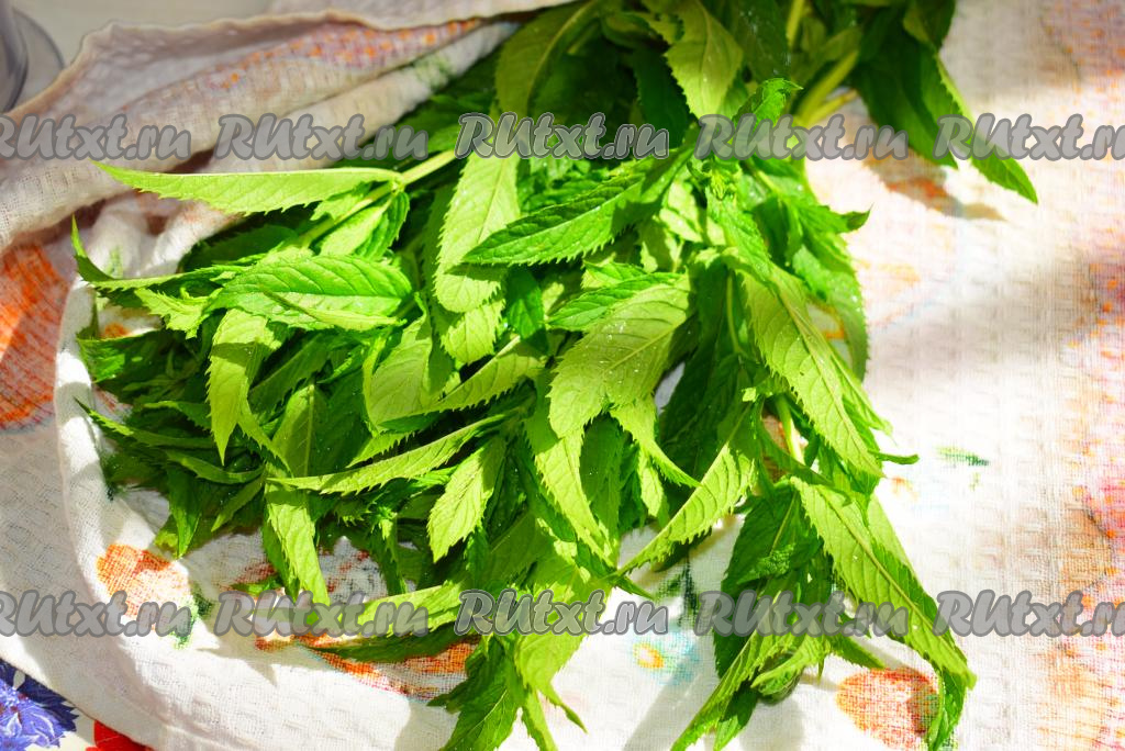 Свежую мяту перебираем, промываем под холодной проточной водой, обсушиваем при помощи полотенца.