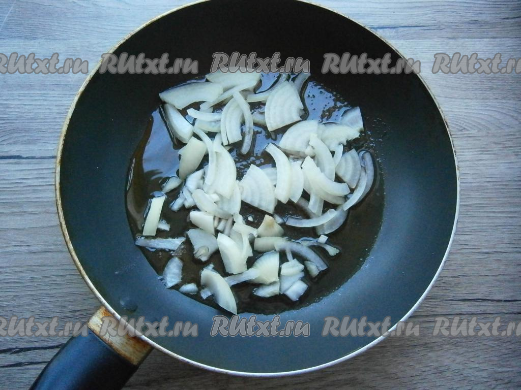 Обжаренных карасей переложить со сковороду на тарелку, а в ту же сковороду влить оставшееся растительное масло. Добавить очищенный и нарезанный произвольно репчатый лук, обжарить на среднем огне, помешивая, до легкой золотистости.