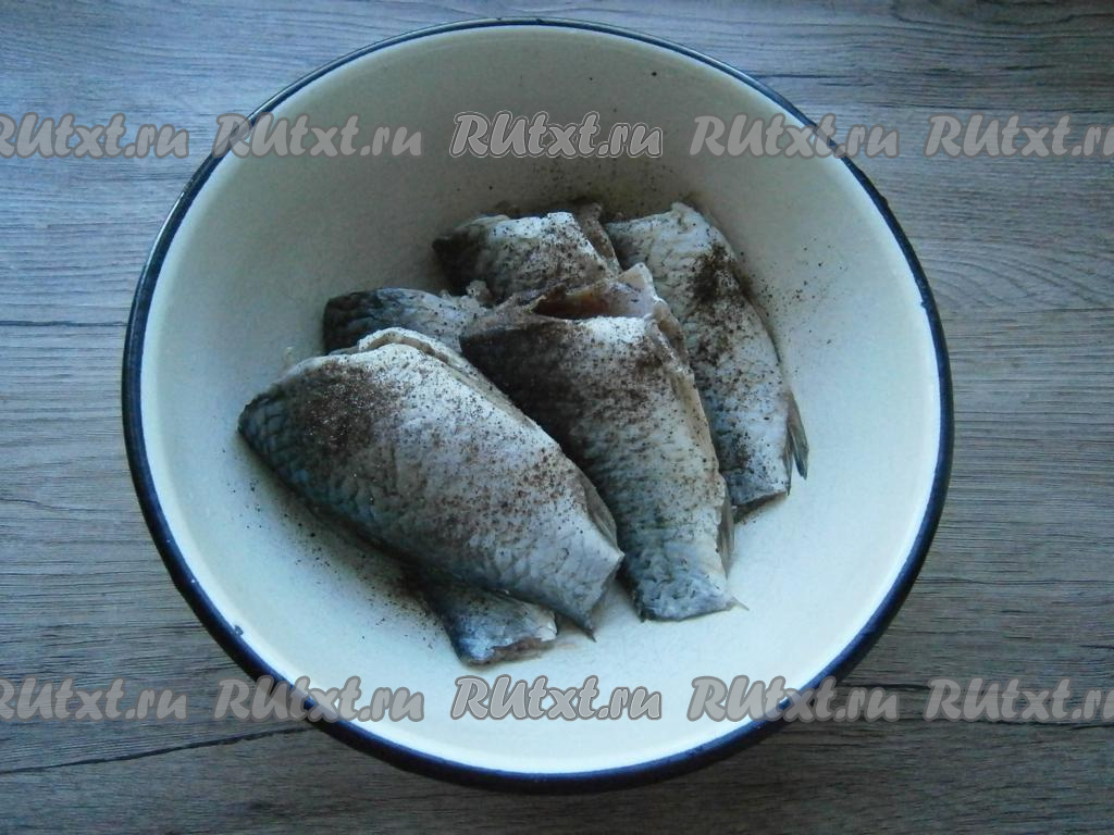 Посолить рыбу и поперчить.