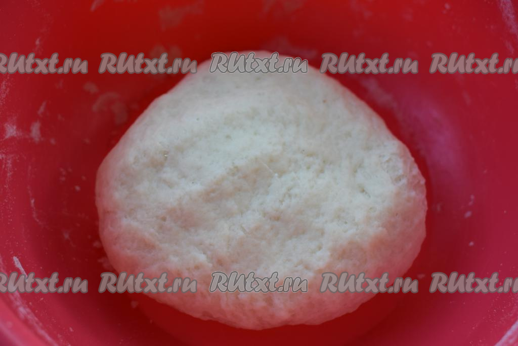 Когда тесто немного остынет, начинаем замешивать его руками. Тесто должно получиться крутым и плотным по консистенции, оно легко раскатывается и не липнет к рукам. Заворачиваем тесто в пакет и даем полежать при комнатной температуре 20 минут. Пока тесто отдыхает, приготовим овощную начинку.