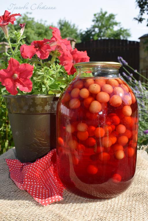 Далее компот из вишни убираем на хранение в погреб или храним его в квартире. Такая заготовка прекрасно хранится в течение года, но так как компот с косточками, то лучше выпить его и не хранить дольше года.