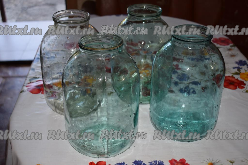 Банки промываем горячей водой с содой, крышки кипятим в воде пару минут.