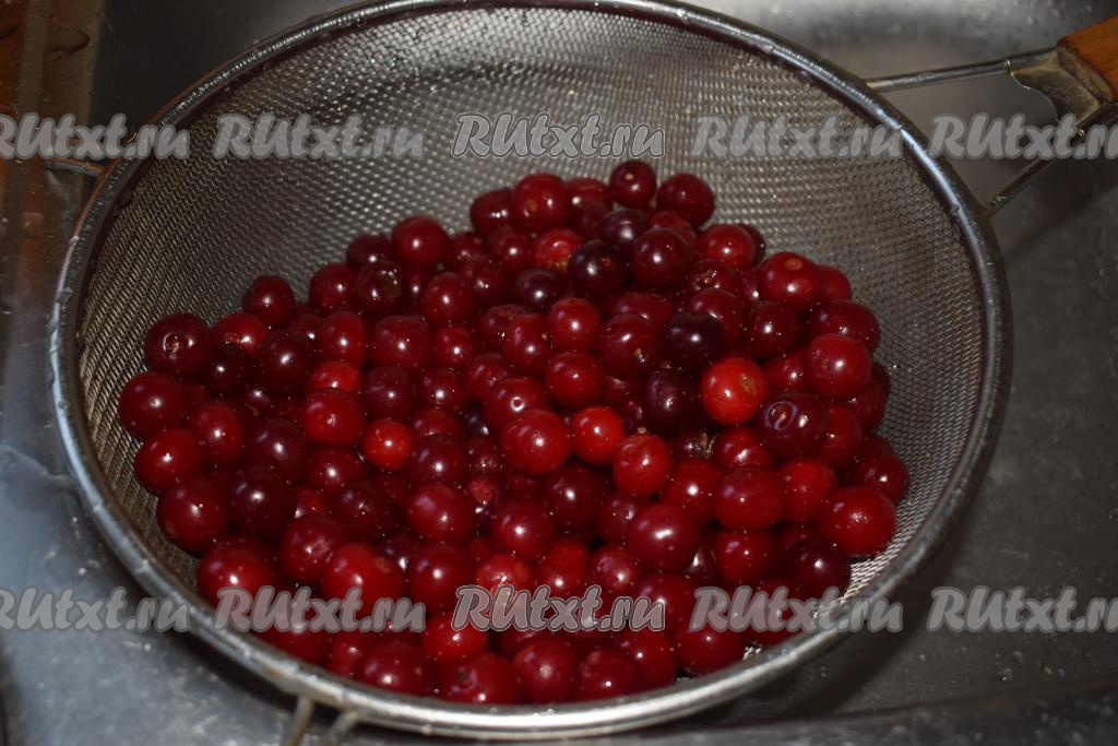 Вишню нужно перебрать, удаляя порченые, подгнившие, черные ягоды.