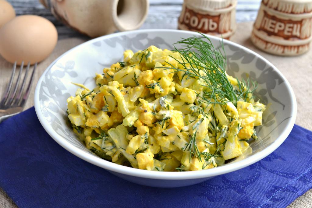 Для приготовления салата из вареных яиц и свежих огурцов потребуется:
