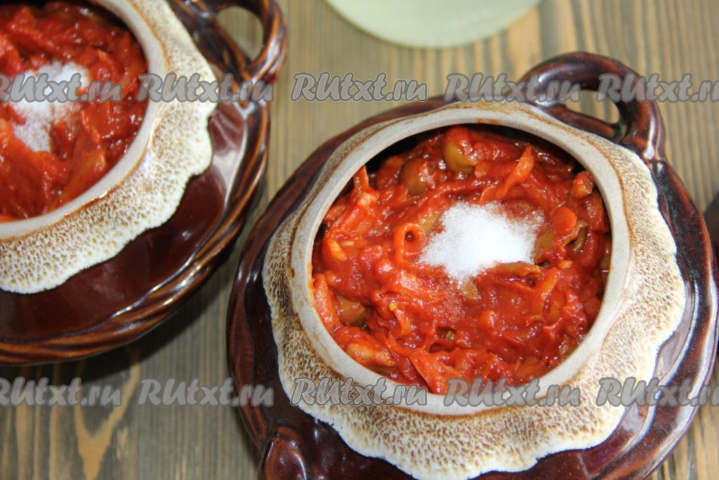 Добавить соль (я добавила по 1/2 чайной ложечки в каждый горшочек).