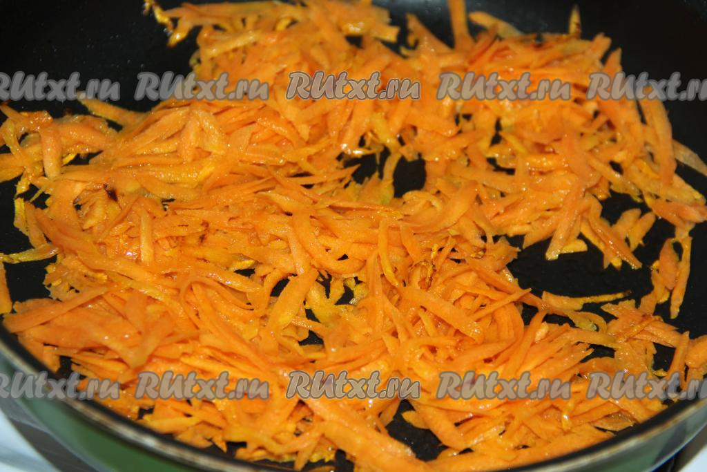 Обжарить морковь на растительном масле на среднем огне в течение 5 минут, помешивая.