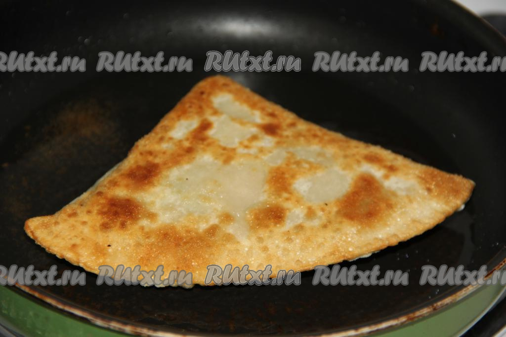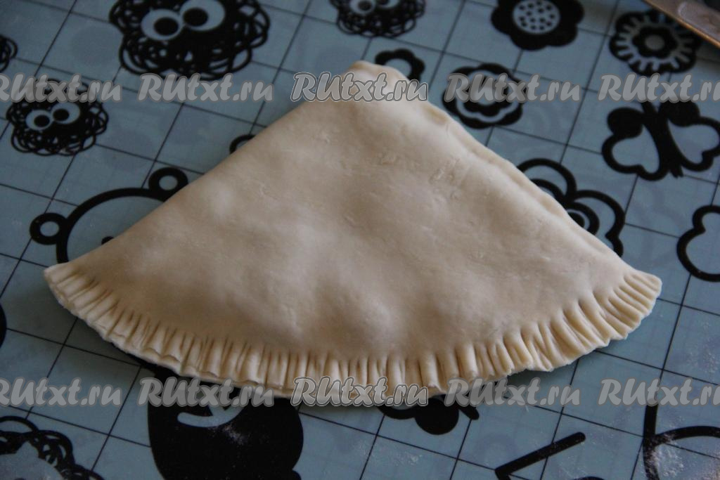 Завернуть лепёшку ещё раз. Таким образом у нас получится треугольная лепёшка. Тщательно скрепить край с помощью вилки.