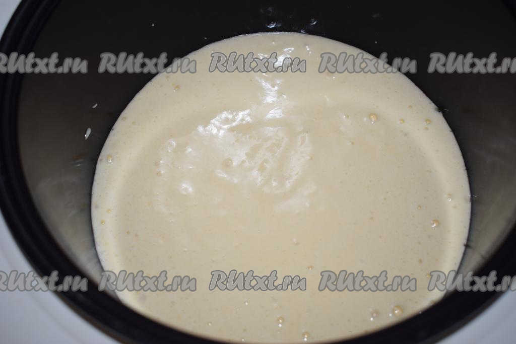 Далее смазываем стенки чаши мультиварки растительным маслом (при выпечке бисквита в духовке мы этого не делаем - в этом особенность). Для того чтобы готовый бисквит было легко извлечь из чаши мультиварки, на дно чаши кладем круг, вырезанный из фольги или пергамента. Выливаем наше тесто.