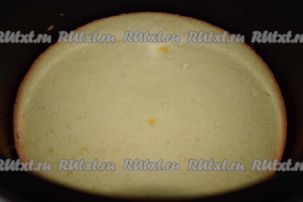 Накрываем чашу мультиварки тарелкой и переворачиваем вверх дном. Бисквит легко выйдет из чаши.