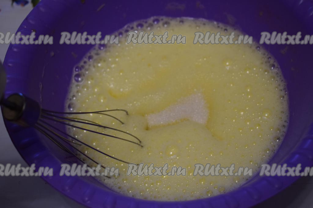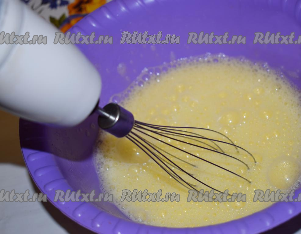 Взбивать яйца сначала на медленной скорости миксера в течение 3 минут.
