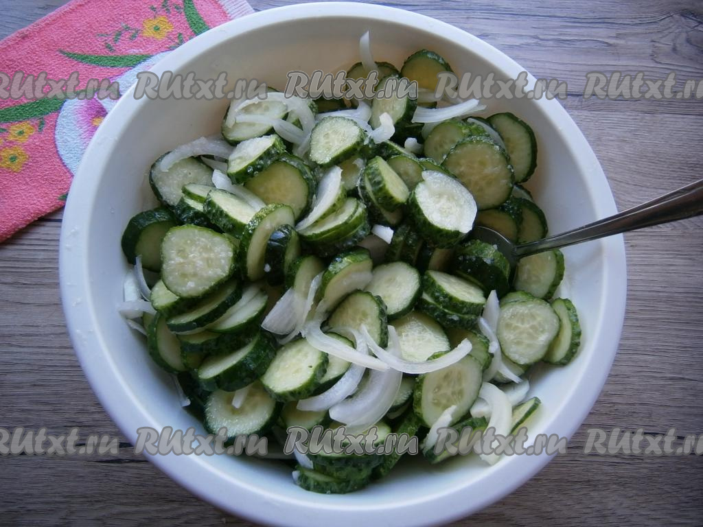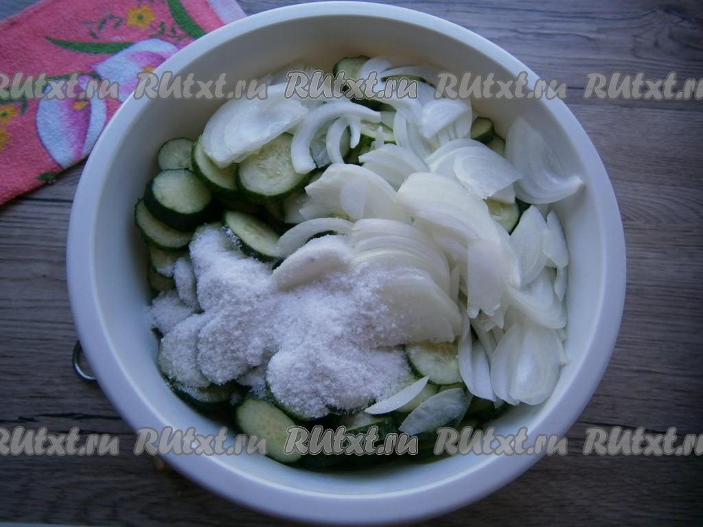 Хорошенько огурцы перемешать и оставить их на 3 часа. Каждый час огурцы следует перемешивать.