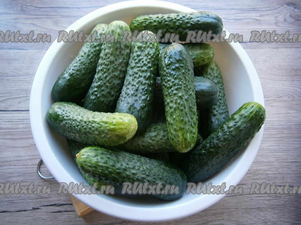 Небольшие молоденькие огурчики хорошо вымыть, замочить на 1-2 часа в холодной воде.