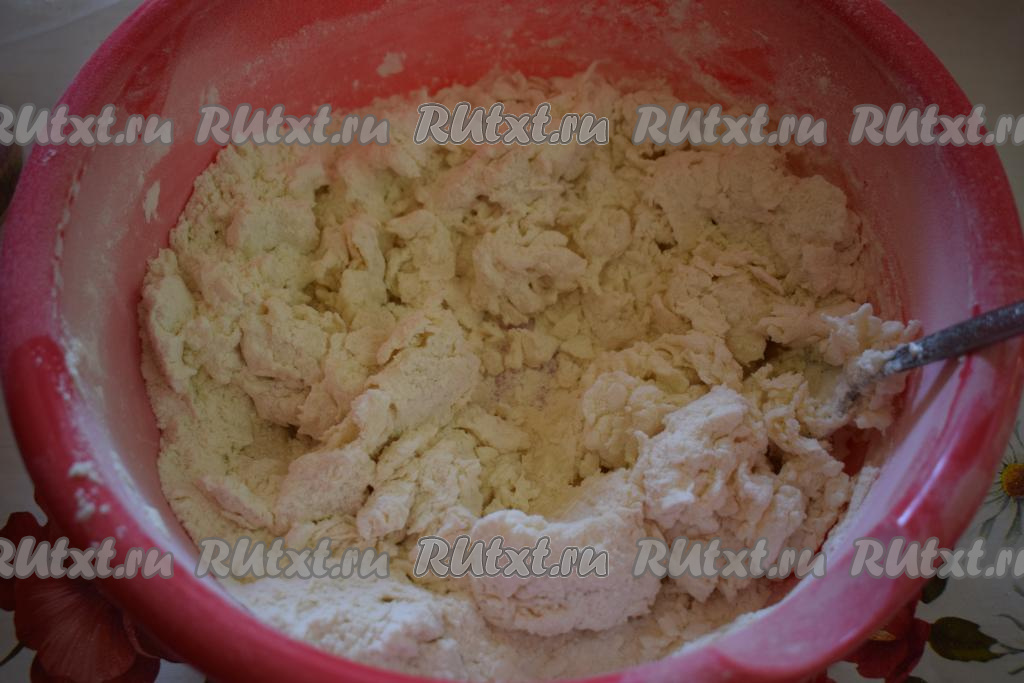 И начинаем замешивать тесто, сначала вилкой, чтобы не обжечься, а затем руками.