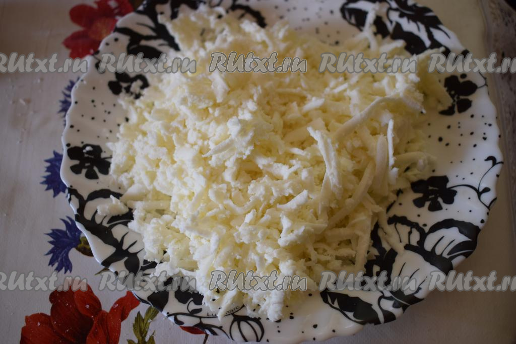В это время займемся приготовлением начинки, для этого натрем адыгейский сыр на крупной терке и, если сыр не соленый, немного посолим его по вкусу.