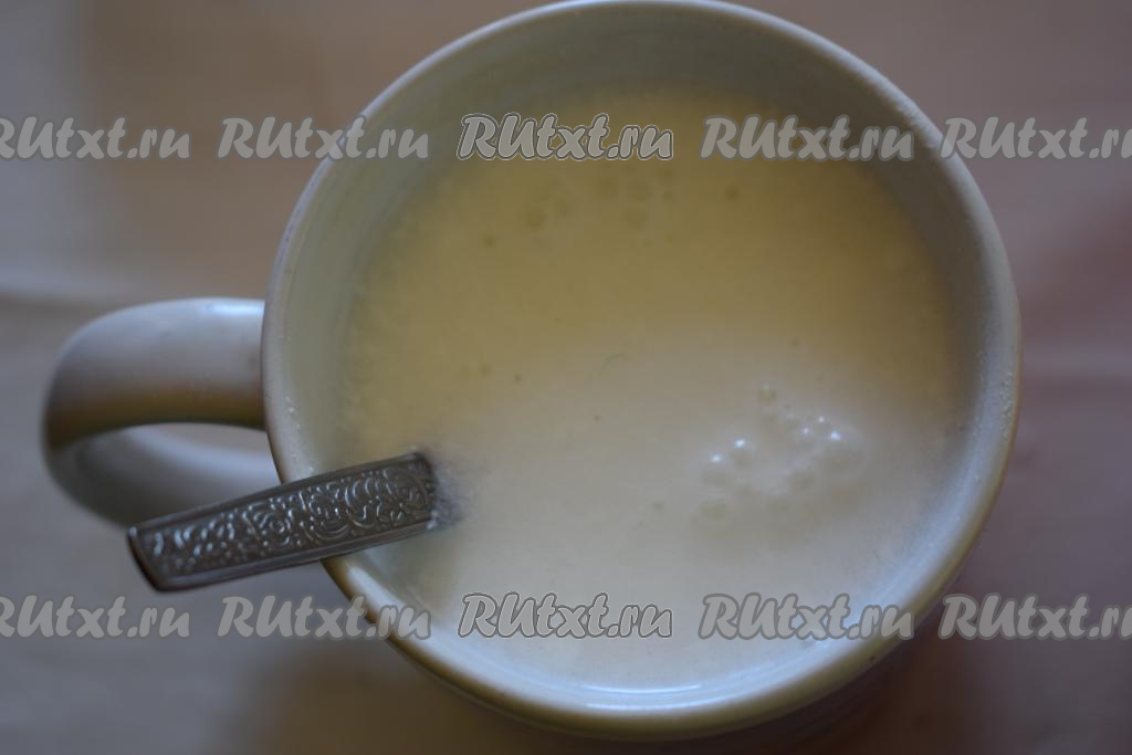 В стакан кладем сметану, соль и заливаем до верха горячей водой (температура воды, примерно, 85 градусов). Сметану можно заменить на 3 столовые ложки сливок жирностью 33% или на 0,5 стакана молока, тесто будет немного отличаться, но вкусно будет в любом случае.