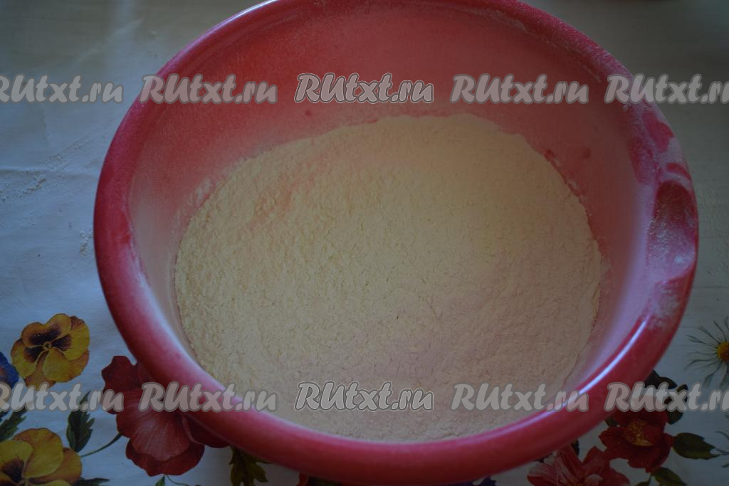 Сначала приготовим тесто. Для этого просеем муку в миску.