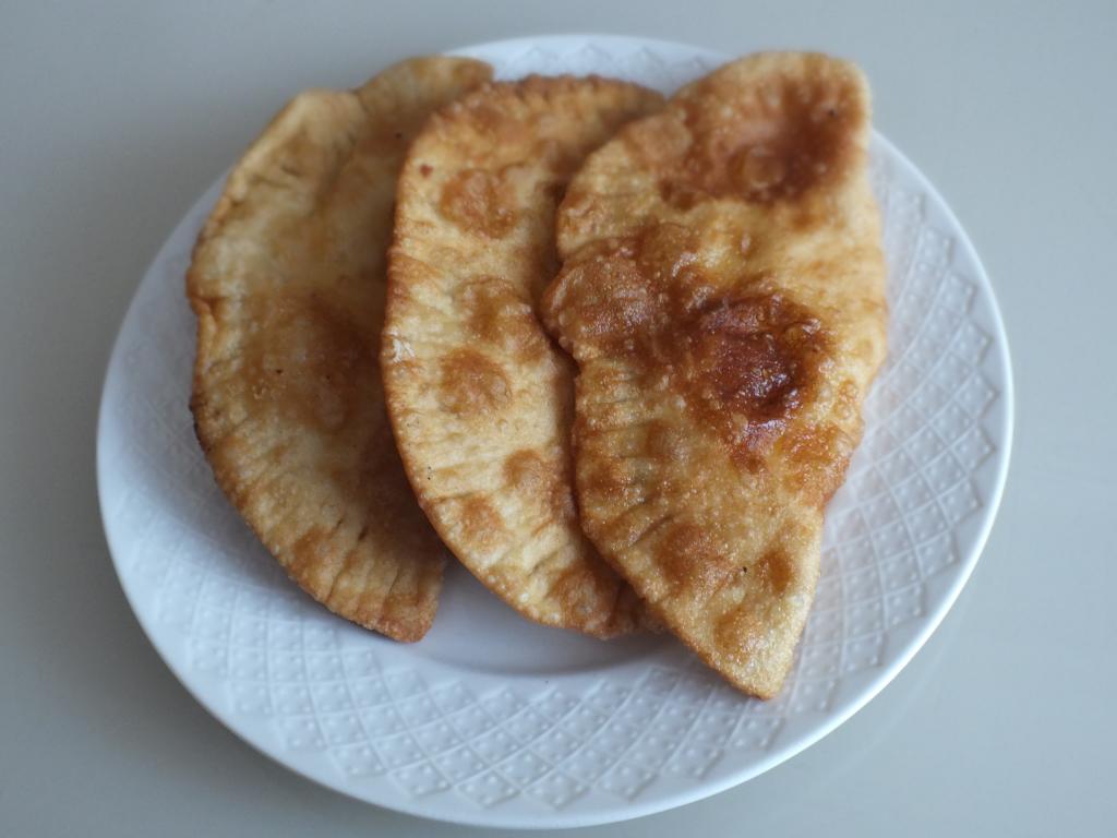 Накрываем начинку второй половинкой теста и плотно сдавливаем края халюжей пальцами. Затем обрезаем лишнее тесто при помощи тарелки по кругу (также можно обрезать тесто катком для чебуреков). Выход по данному рецепту - 20 штук, так как из обрезков теста получаются еще 3-4 штуки.