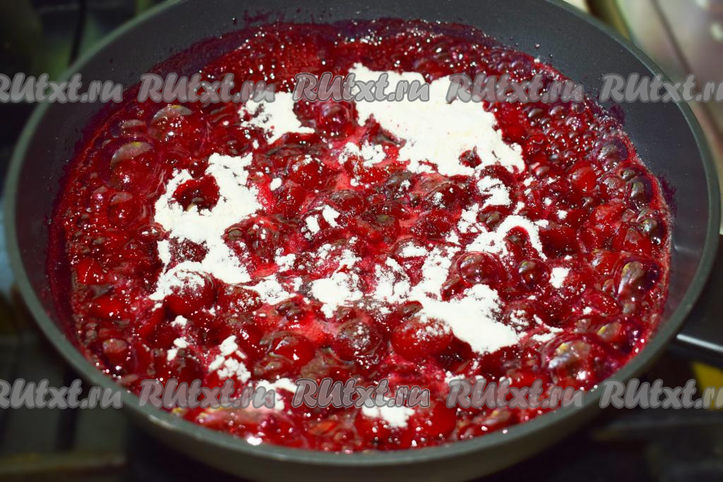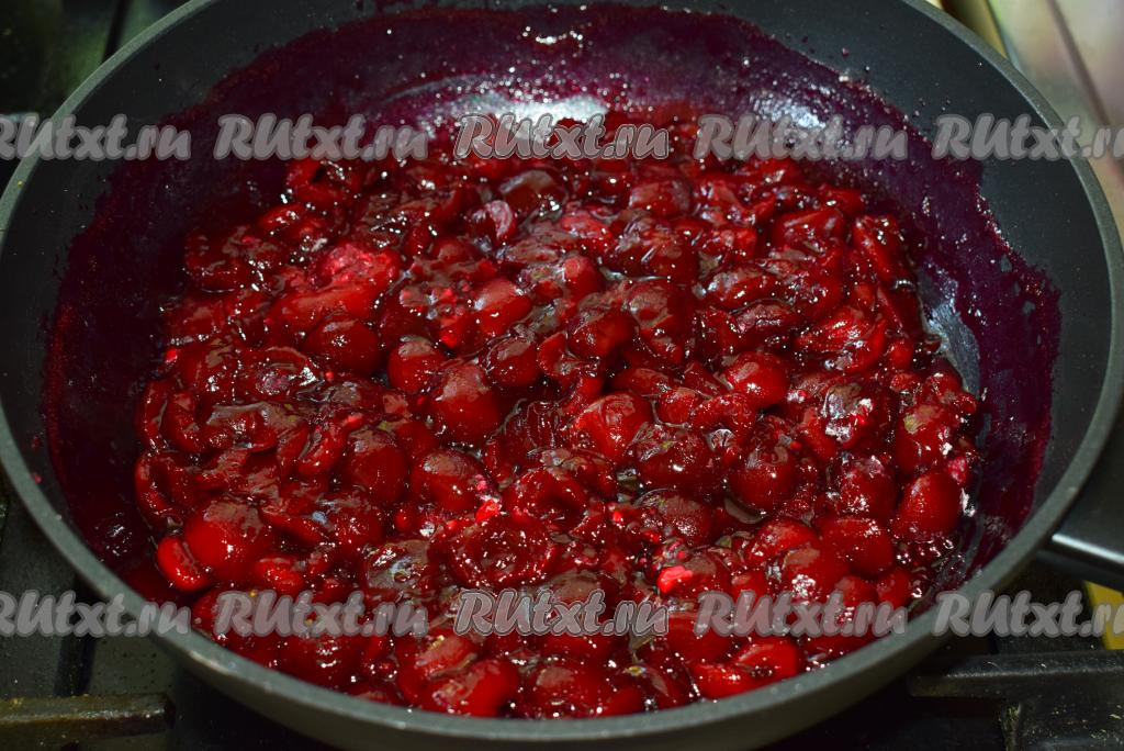 Снимаем сковороду с огня, наша вишневая начинка готова, даём ей остыть до комнатной температуры.