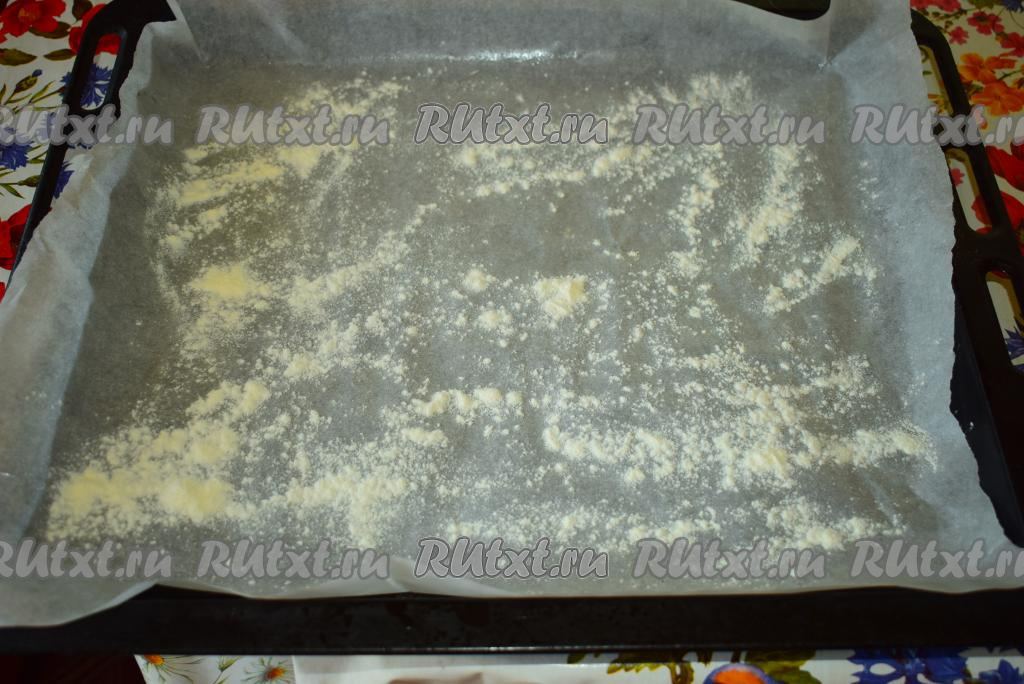 Противень застилаем пергаментом, присыпаем мукой.