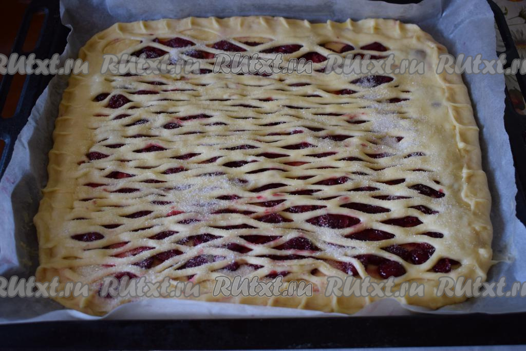 Накрываем сеточкой нашу начинку и скрепляем края пирога.