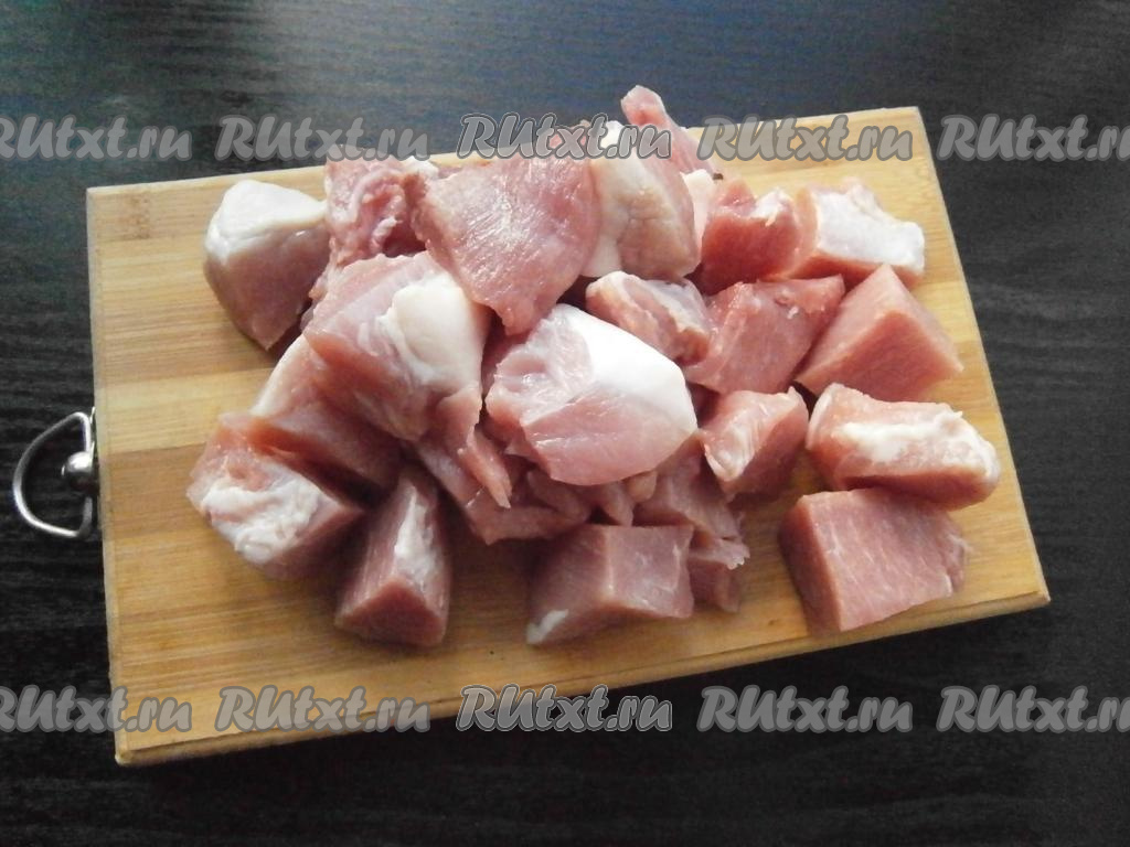 Картофель, лук, чеснок и морковь очистить. Мякоть свинины нарезать средними кусочками.