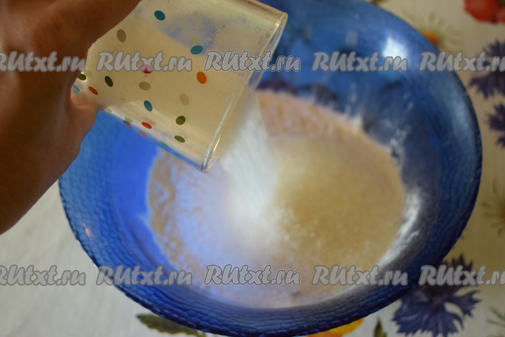 Добавляем к муке с сахаром одно куриное яйцо (или 3 перепелиных).