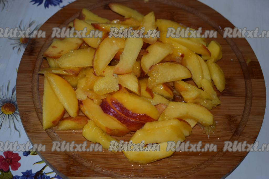 Выкладываем самые красивые и аккуратные дольки нектаринов по кругу, а менее ровные кладем в серединку в форме розочки.