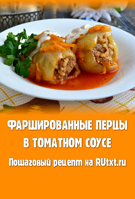Вкусные, ароматные фаршированные перцы, приготовленные в томатном соусе, подать к столу горячими со сметаной.