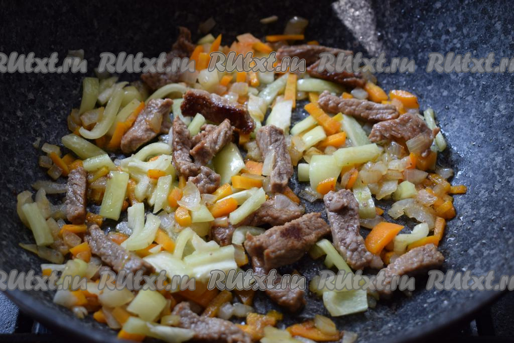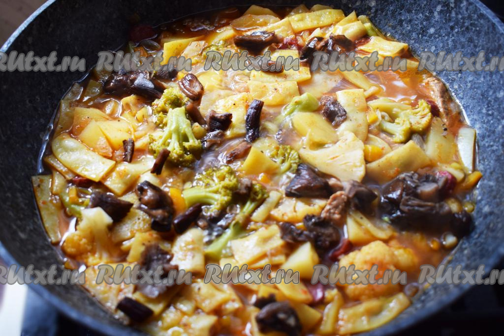 Обжариваем все вместе еще 10-15 минут под крышкой.