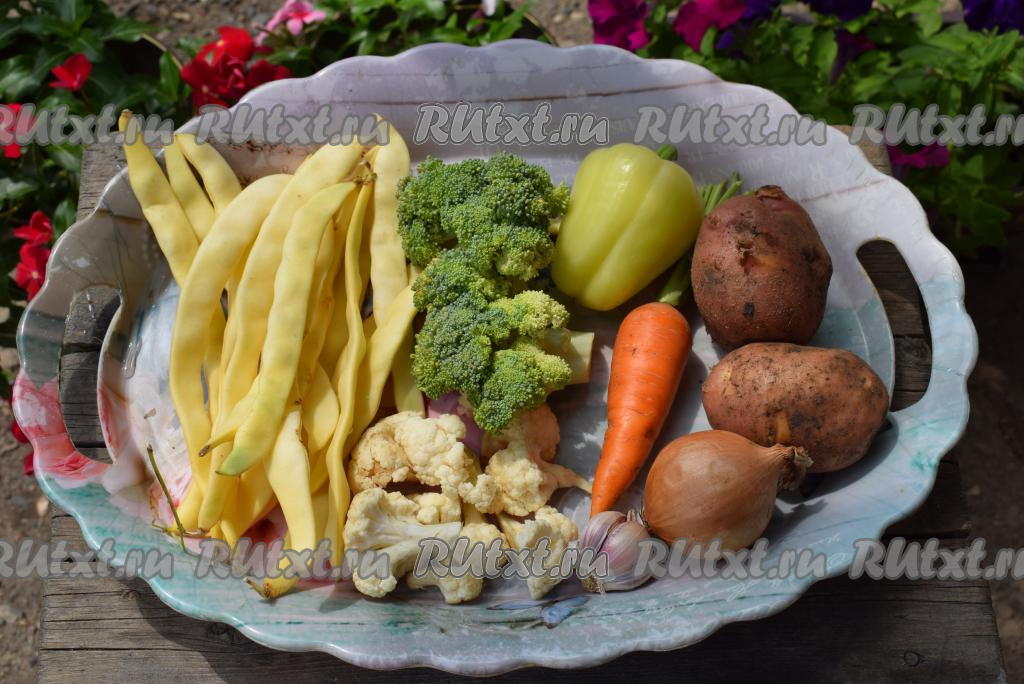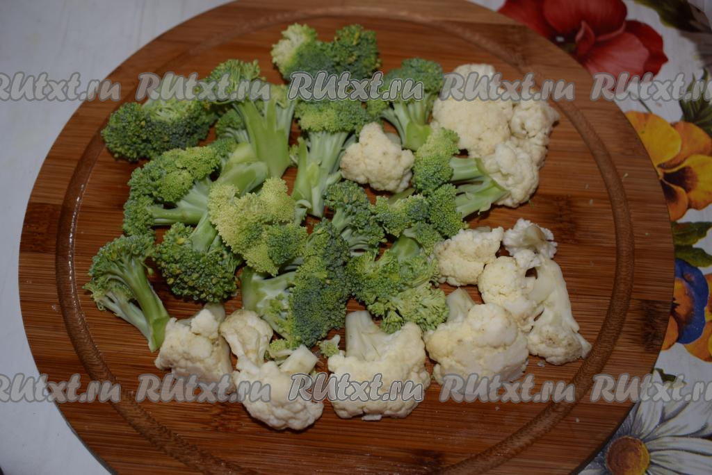 Цветную капусту и брокколи разбираем на соцветия.
