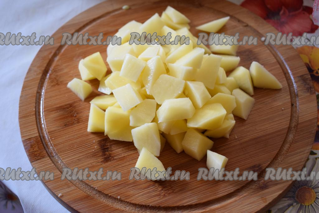 Картофель чистим и нарезаем на кусочки.
