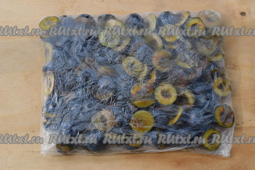 Подготовленные половинки слив выкладываем в пакеты тонким слоем.