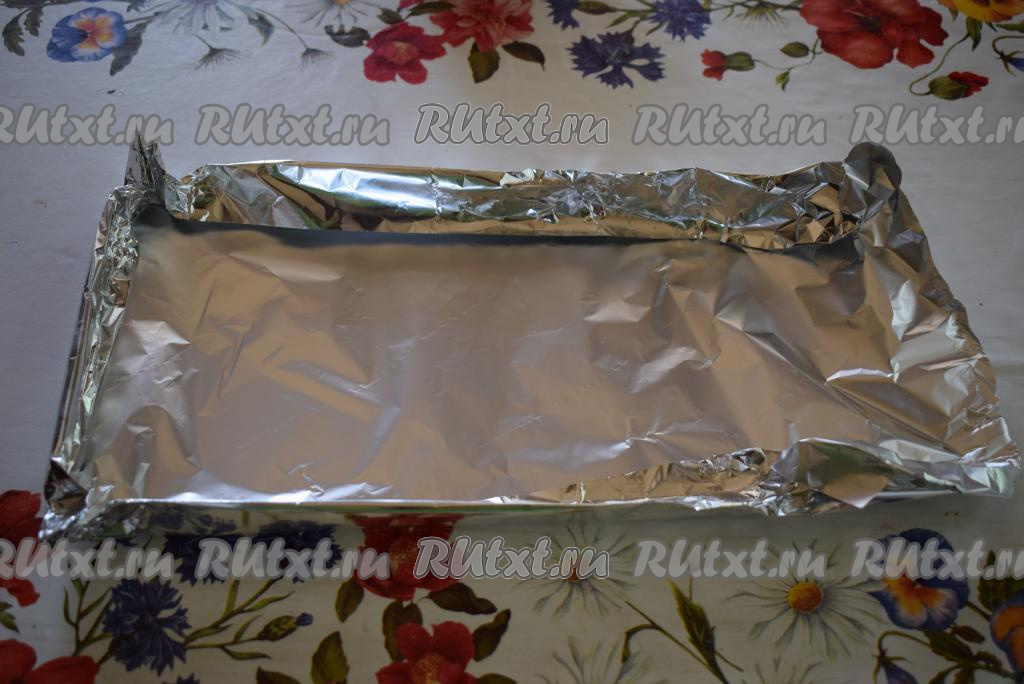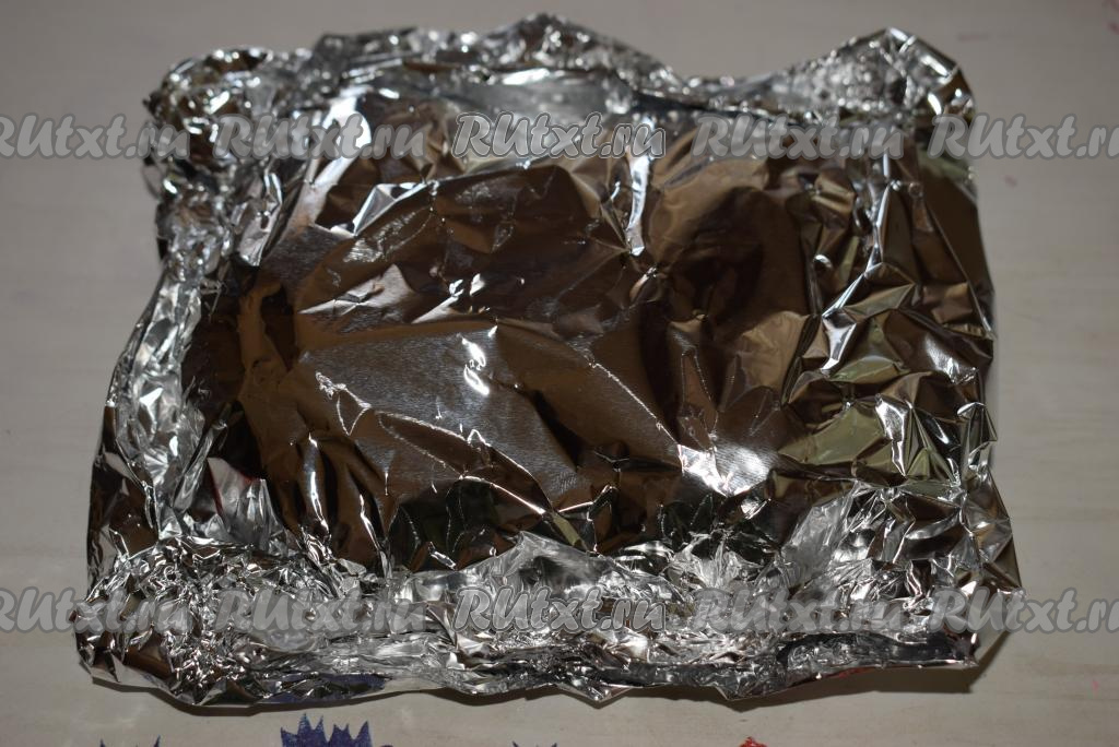 Пока грудки обжариваются, делаем кармашек из фольги.