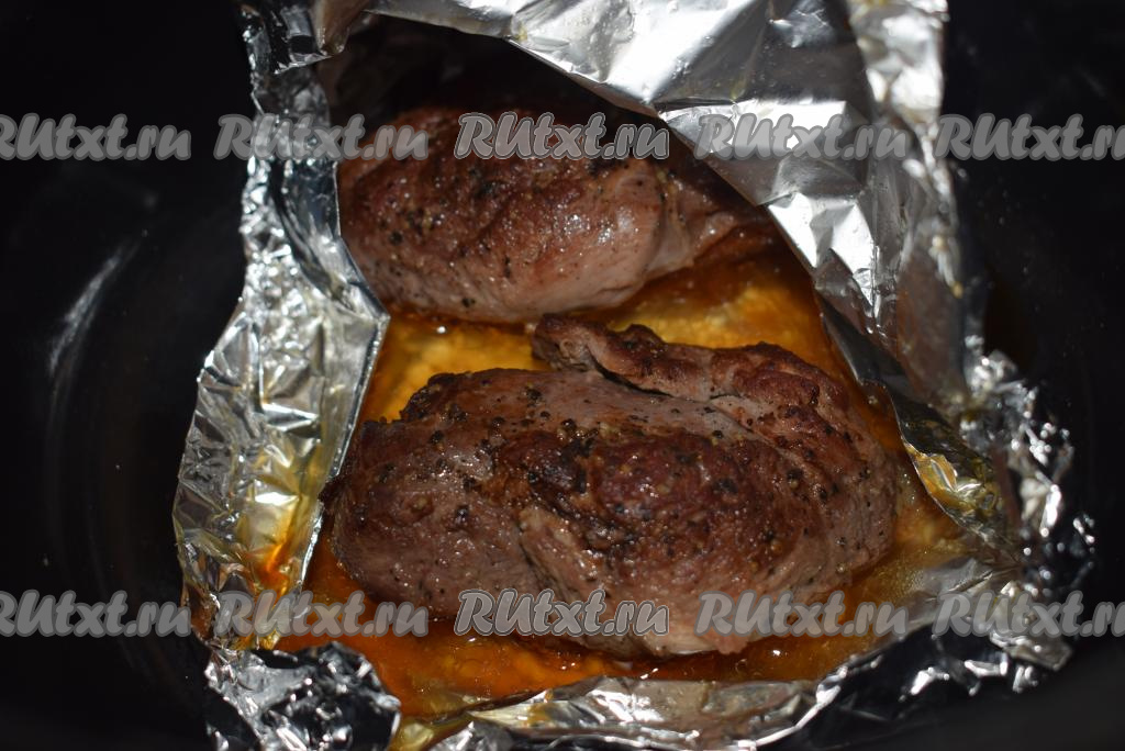 Мультиварку ставим на режим "Мультиповар", выбираем температуру 100 градусов и запекаем утиные грудки 20 минут (если у вас нет функции "Мультиповар", то можно воспользоваться функцией "Выпечка", но тогда время приготовления надо будет сократить до 15 минут).