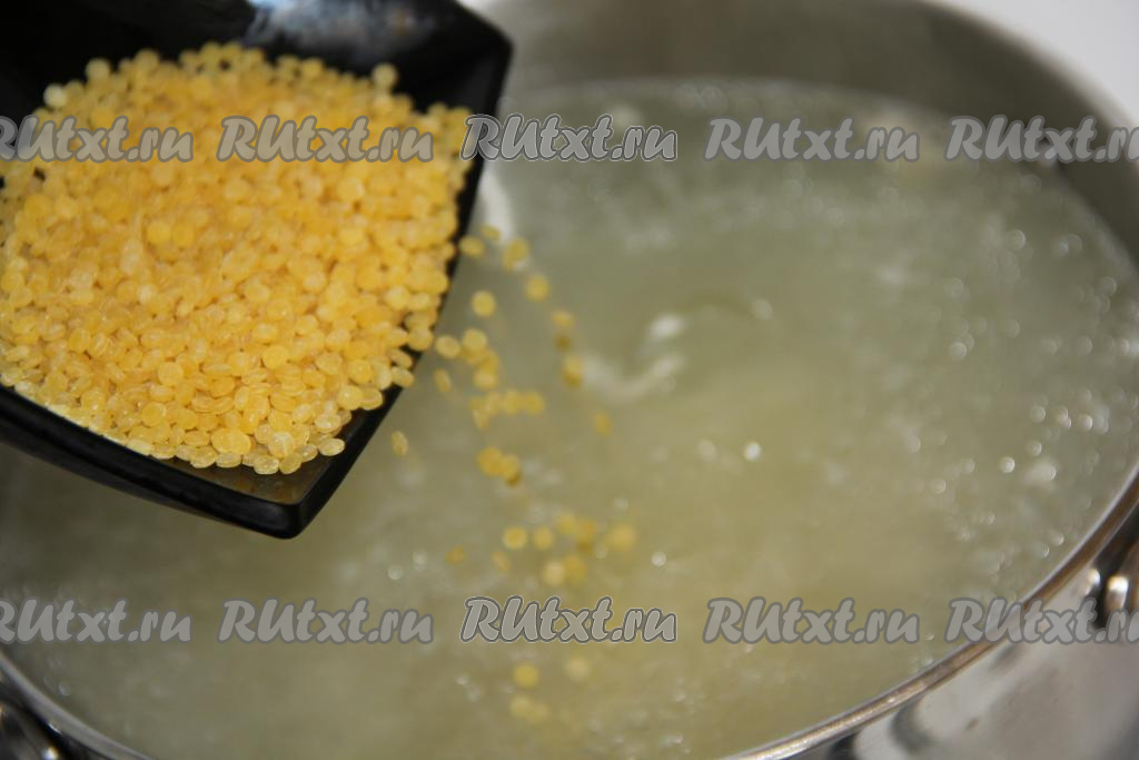 Добавить картофель и кускус в кипящий бульон, снова довести до кипения, уменьшить огонь и варить 15 минут.