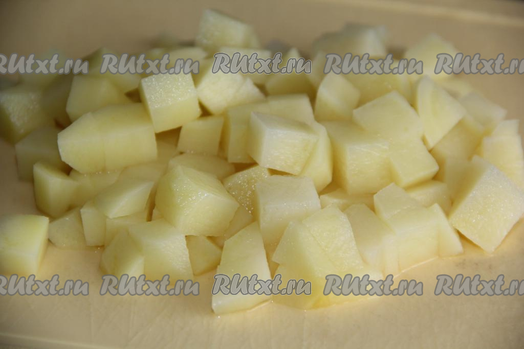 Картофель очистить и нарезать средними кубиками.