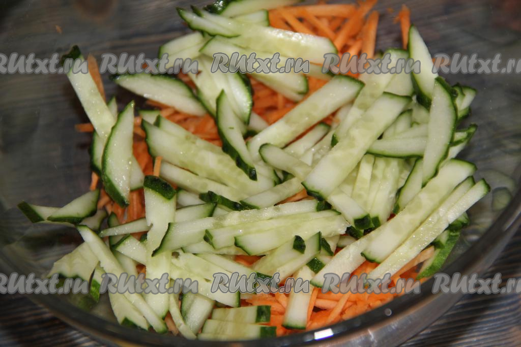 Морковь очистить и натереть на тёрке для моркови по-корейски.