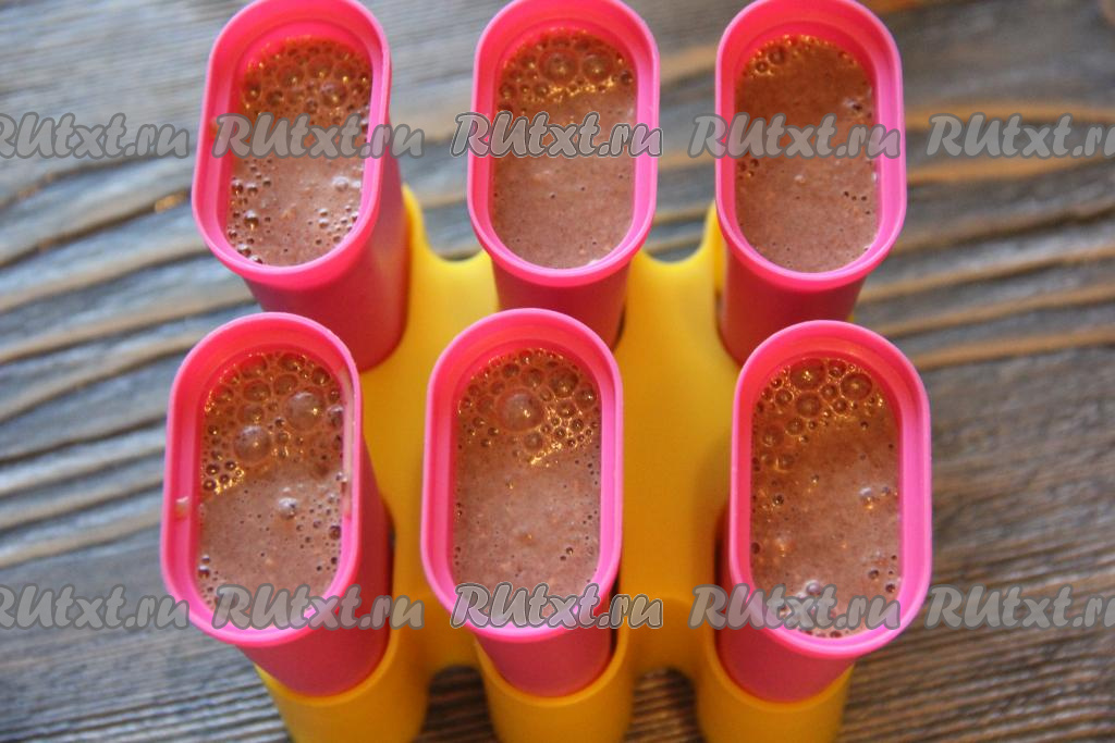 Вставить палочки и поставить молочно-шоколадное мороженое в морозилку на 5-6 часов.