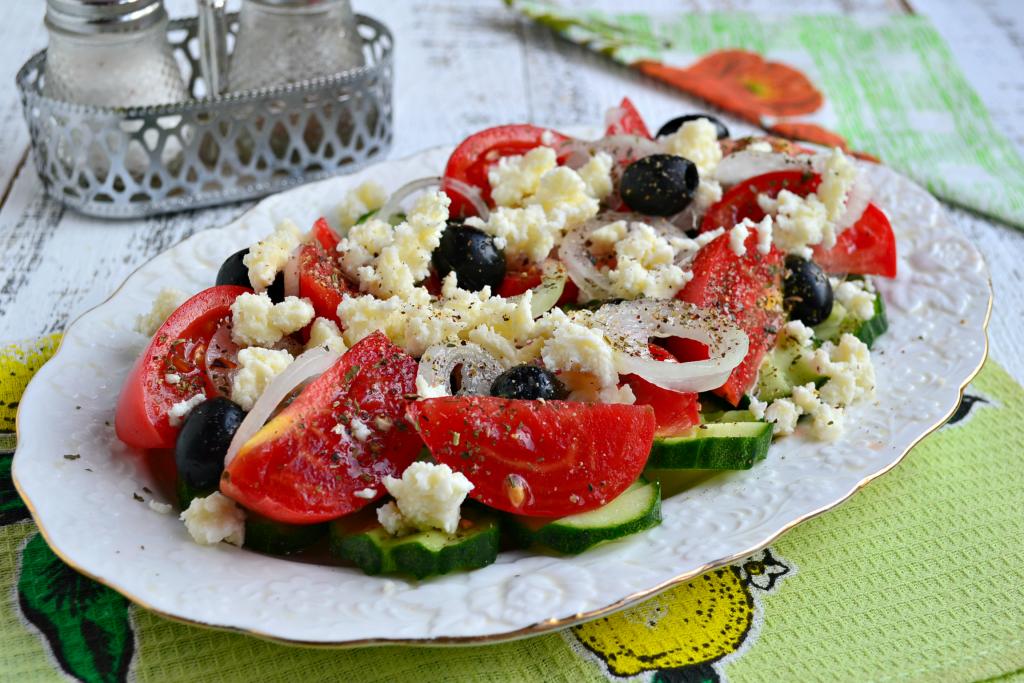 Всего несколько минут и у вас на столе аппетитный салатик, который порадует приятным вкусом и яркими красками, а сыр сделает блюдо более сытным и немного оттенит вкус овощей. Подавать классический греческий салат, приготовленный с брынзой, нужно сразу к столу. Вкусно, полезно и безумно аппетитно!