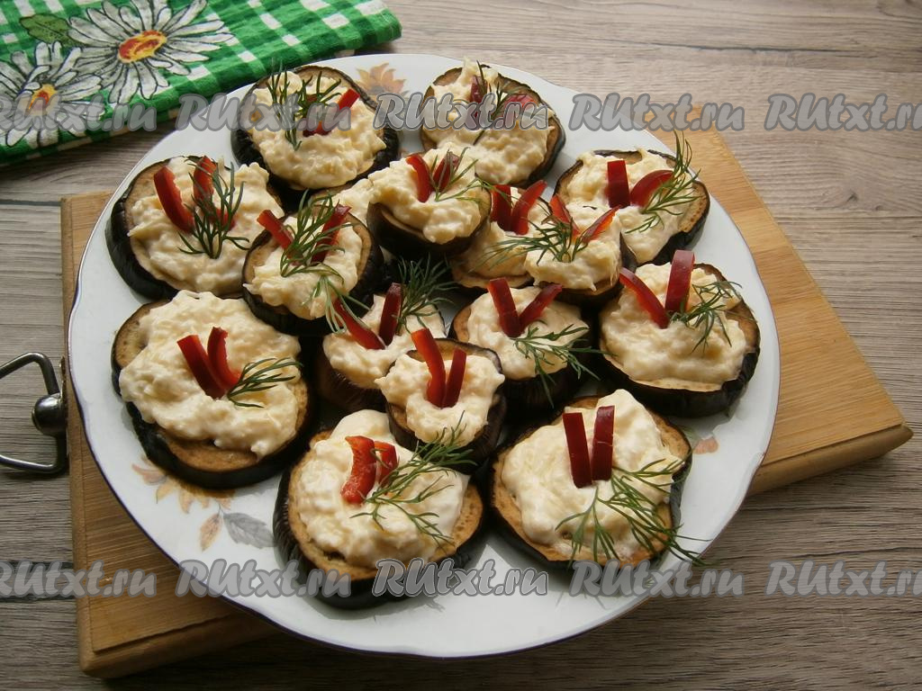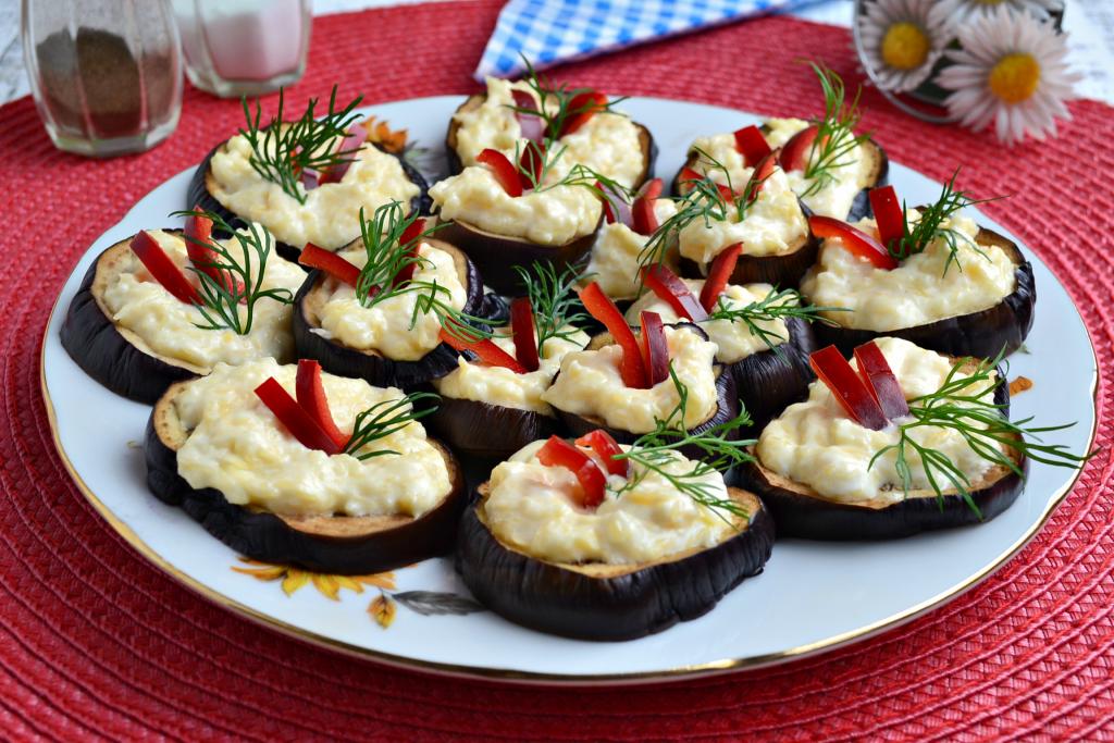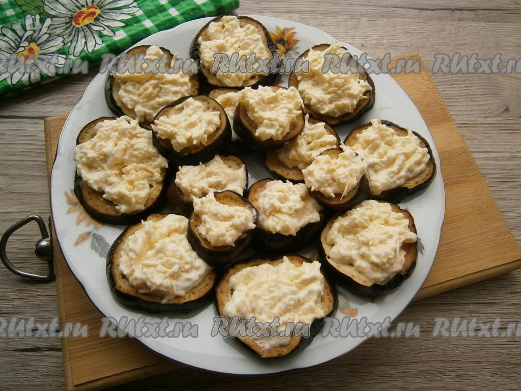 Получившуюся сырную массу выложить на кружочки остывших баклажанов.