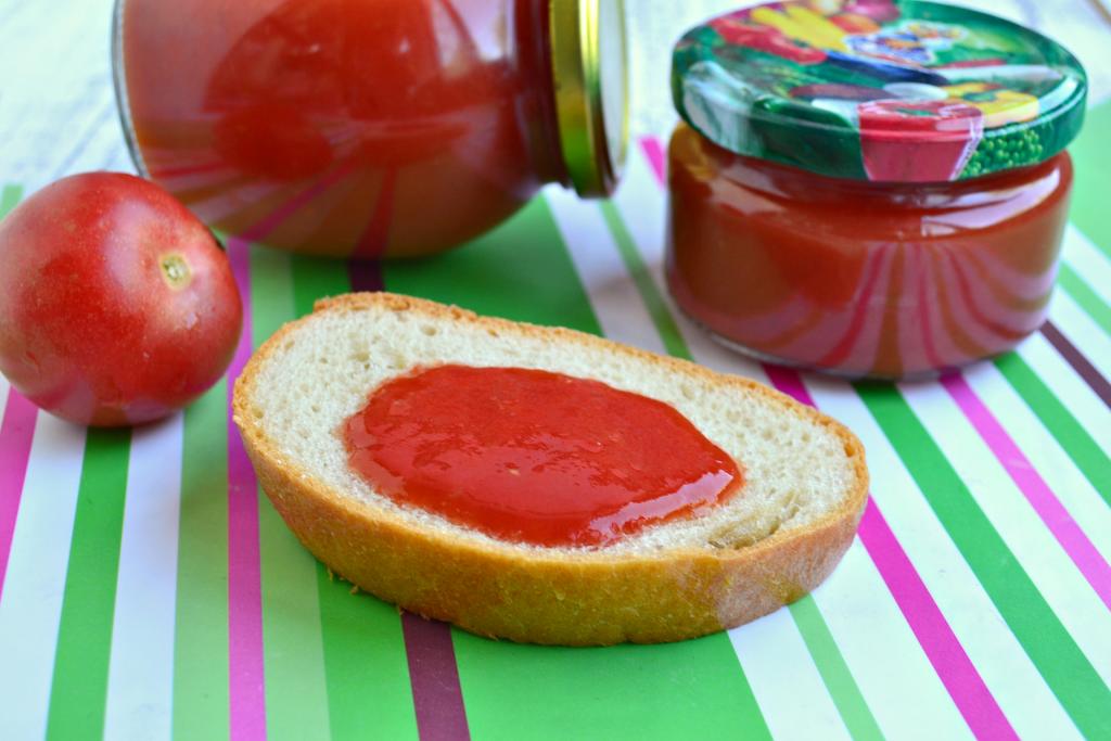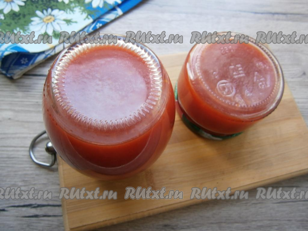 Очень вкусный кетчуп из помидоров, приготовленный с крахмалом на зиму, оставить до полного остывания, а затем переставить на хранение. Хранится заготовка в условиях городской квартиры.