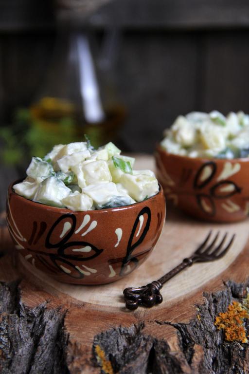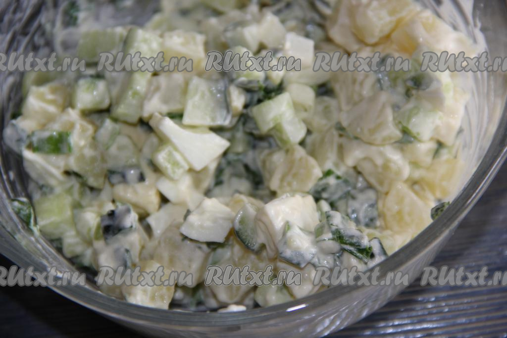 Вот такой простой, нежный и вкусный картофельный салат с огурцами получился.