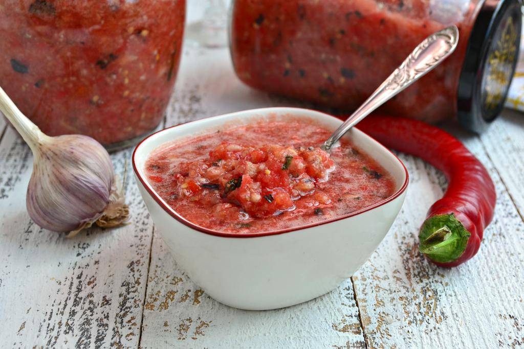 Разложить необычайно вкусную и ароматную сырую аджику по простерилизованным сухим баночкам, закрутить ошпаренными кипятком крышками. Поместить для хранения в холодильник.