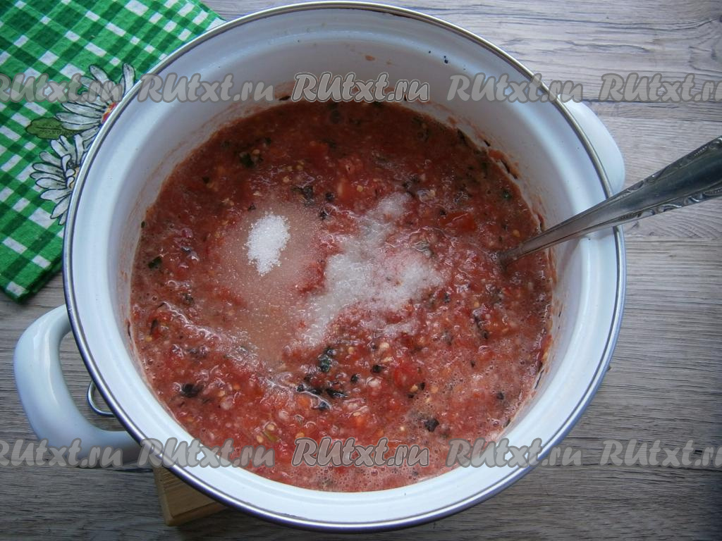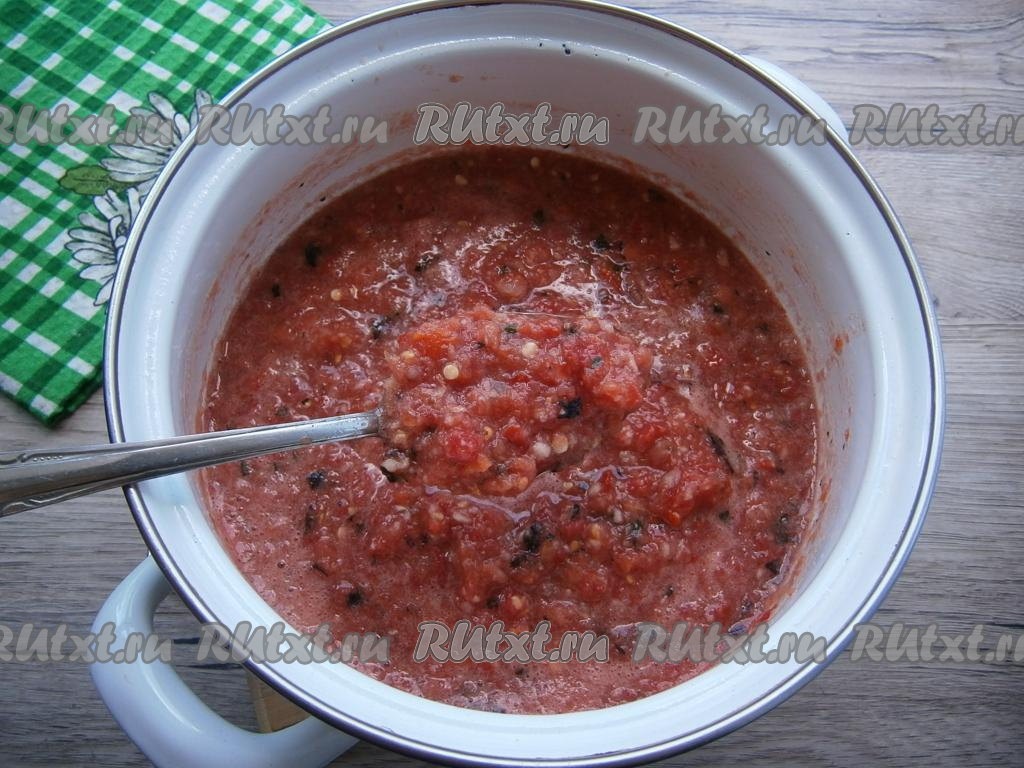 Помидоры перекрутить на мясорубке.
