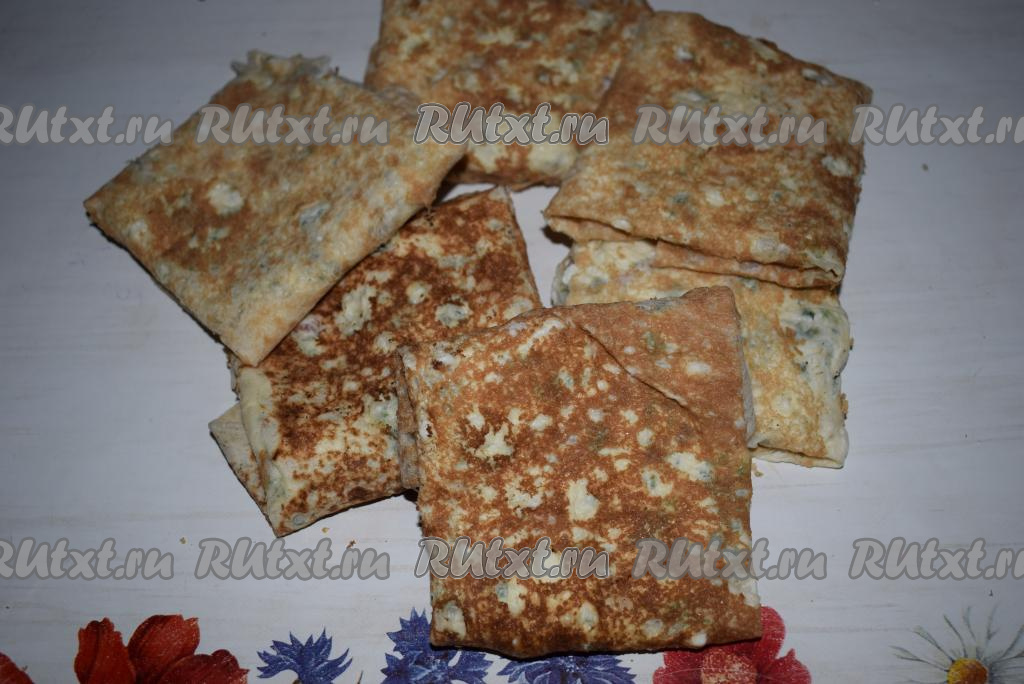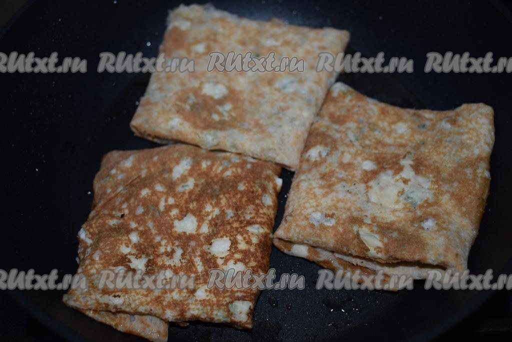 Обжариваем закуску из лаваша с сыром и зеленью с двух сторон до румяной, хрустящей корочки на среднем огне.