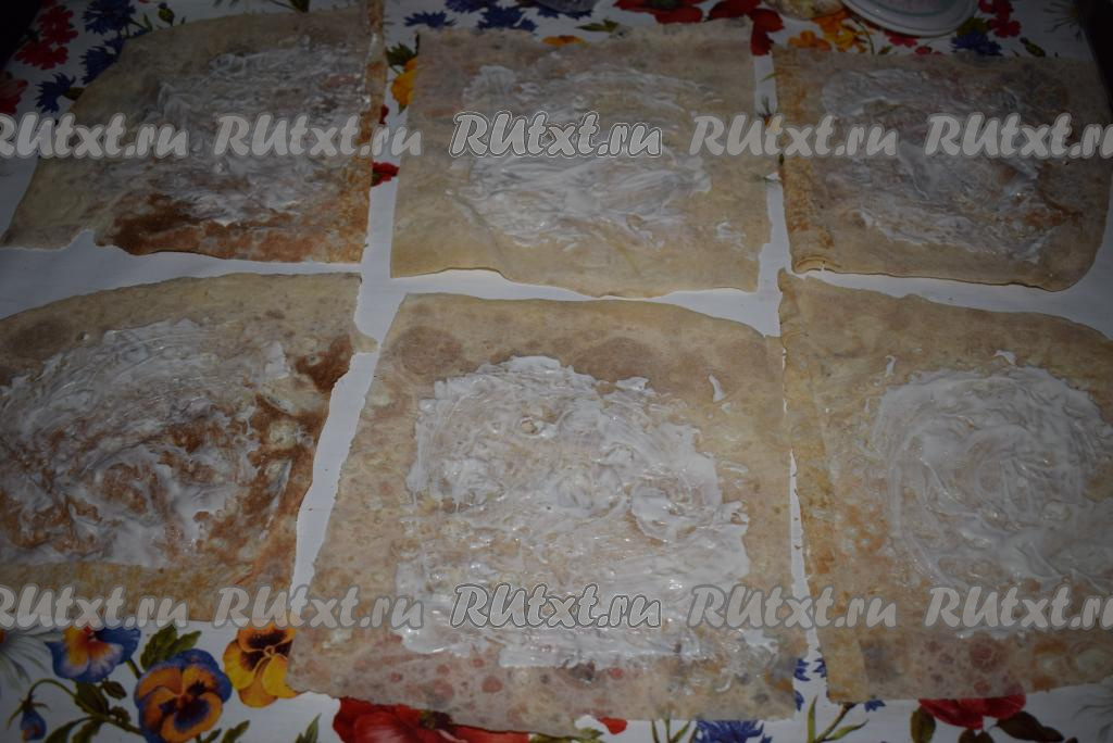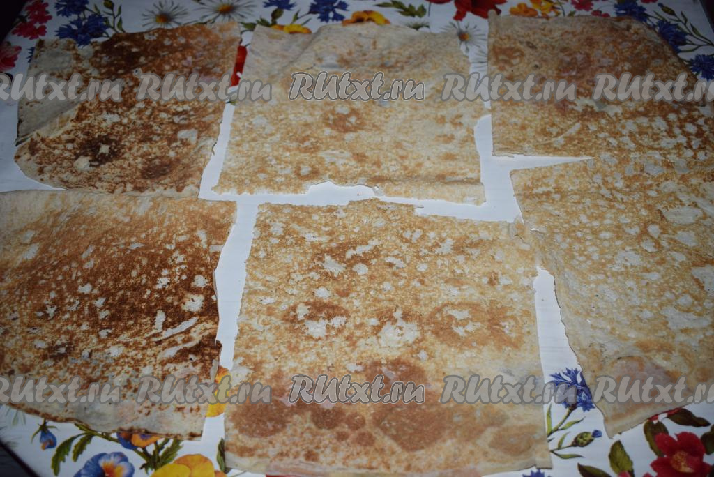 Таким образом подготавливаем все 6 квадратиков лаваша.