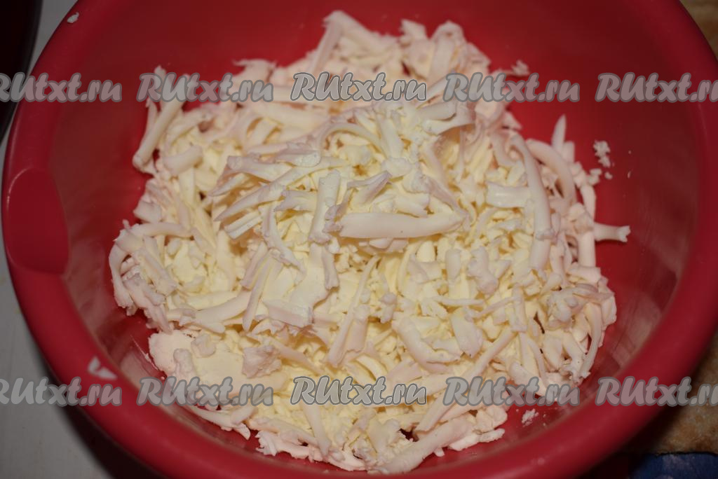 В это время приготовим сырную начинку. Вы можете взять любой сыр, хоть адыгейский, хоть российский, хоть сливочный - от вкуса сыра будет зависеть вкус закуски. У меня сыр фета.