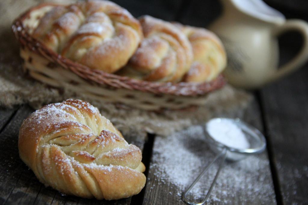 Хочу предложить вашему вниманию красивое формирование плюшек из дрожжевого теста. Тесто для плюшек можно использовать покупное, а можно приготовить по своему любимому рецепту. Я решила испечь из теста, замешанного на молоке. Плюшки с сахаром, испеченные по этому рецепту, получаются аппетитными, мягкими. Готовьте с удовольствием и радуйте своих домочадцев вкусной и красивой выпечкой!