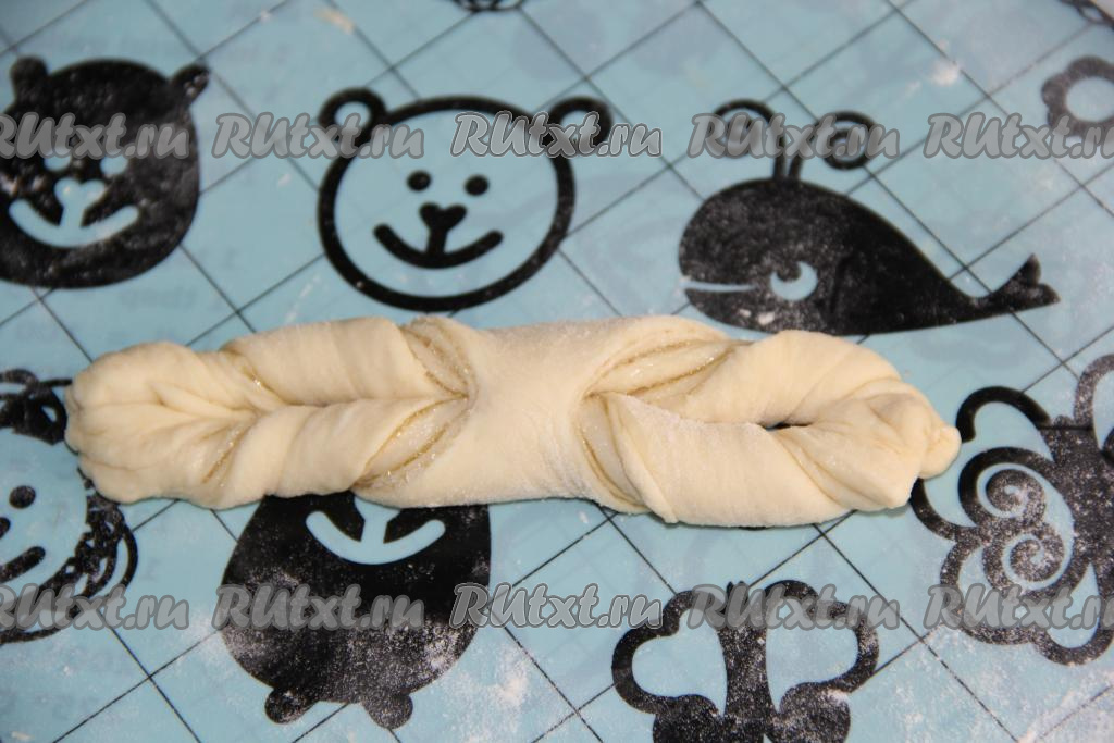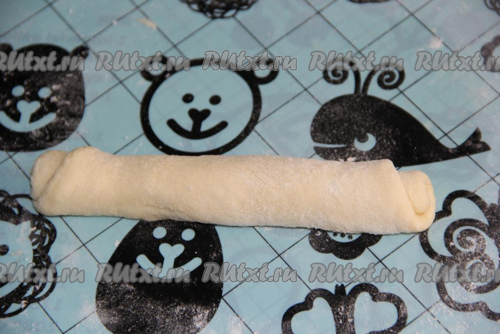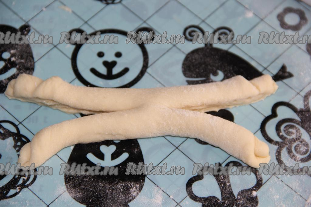 Затем разрезать тесто с двух сторон (как на фото).